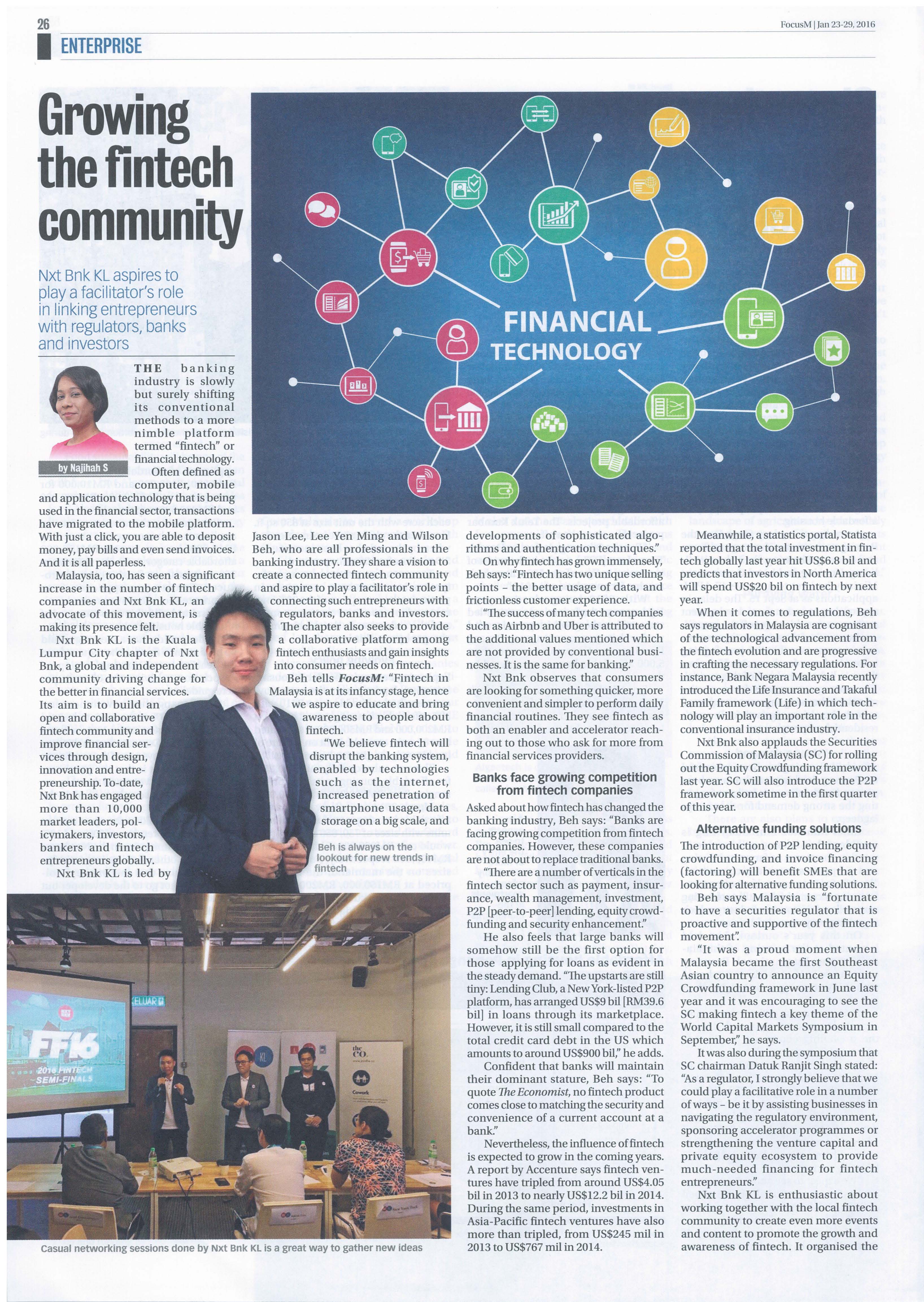 - E.g. it took Malaysians many years to accept and adopt online banking. When you apply for a loan, you still think about filling up forms, going to the bank branch. Can you imagine if in the near future, everything can be done online without paper? It is not easy to change behaviour, but it is what FinTech companies need to do - because change is inevitable - exciting, because the banking industry is on the verge of a major revolution. Just quote examples from overseas - e.g. traditional multi billion dollar institutional banks are fighting for survival against new online only / branchless fintech businesses and we want to be part of this new wave.